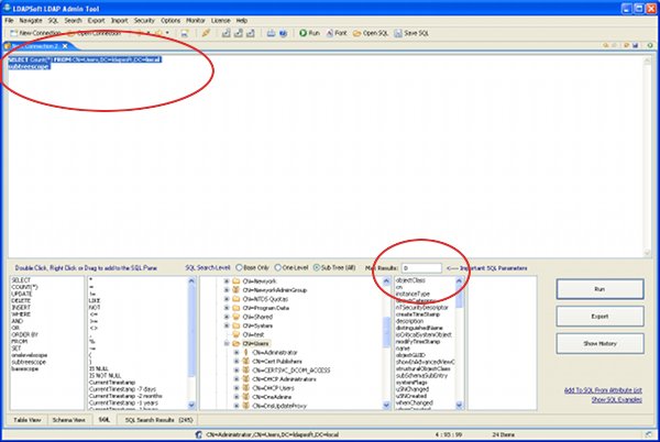 To export all records from container CN=Users,DC=ldapsoft,DC=local, enter a sql statement as: SELECT FROM CN=Users,DC=ldapsoft,DC=local and also increase the Max Results to 0 (no limit)