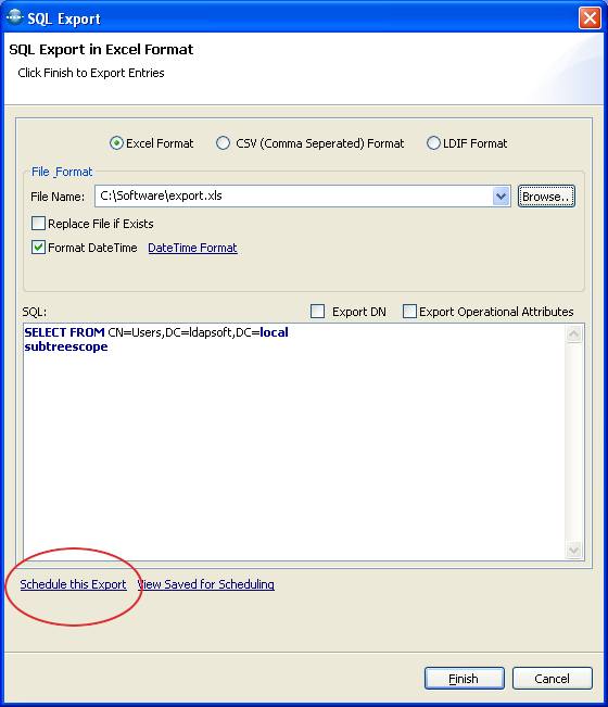 Now Click the Export button, select the excel format radio button, enter the name of the export file, select the 'Export DN' and 'Export Operational Attributes' and then click on the 'Schedule this Export' link.